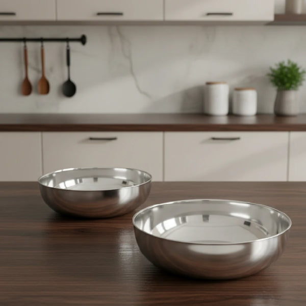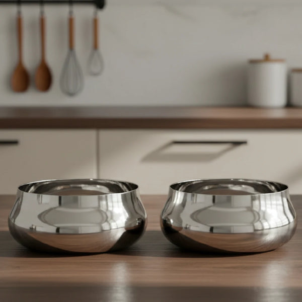 Stainless Steel Deep Bowl – 2 Pcs Set, High Quality, Mirror Finish, Rust-Free & Dishwasher Safe