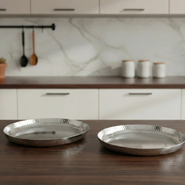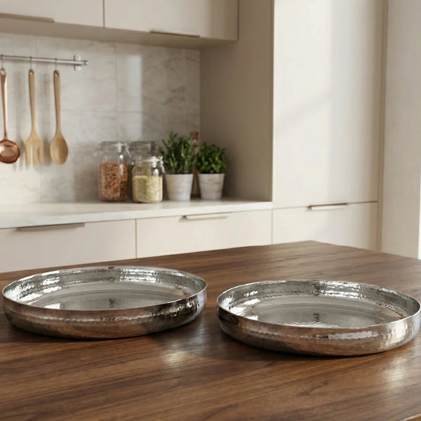 Stainless Steel Bulging Thali – 2 Pcs Set, High Quality, Hammered Finish, Durable & Rust-Free, Ideal for Daily & Festive Use, 26cm, 28cm, 30.5cm, 33cm