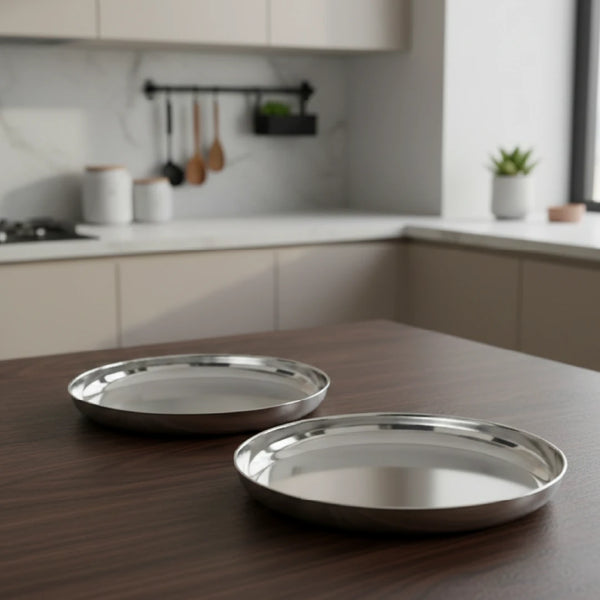 Stainless Steel China Plate - 2 Pcs Set, High Quality, Mirror Finish, Durable & Rust-Free, Ideal for Daily & Festive Use, 16.5cm, 19.2cm, 21.5cm, 24cm, 26.3cm, 28.5cm, 31cm