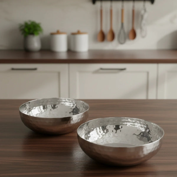 Stainless Steel Deep Bowl – 2 Pcs Set, High Quality, Hammered Finish, Handcrafted Look, Rust-Free & Dishwasher Safe