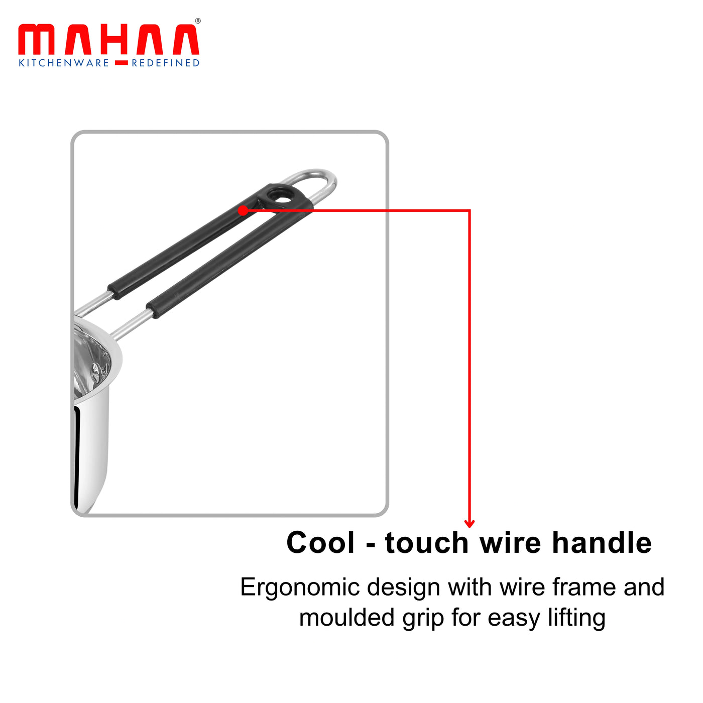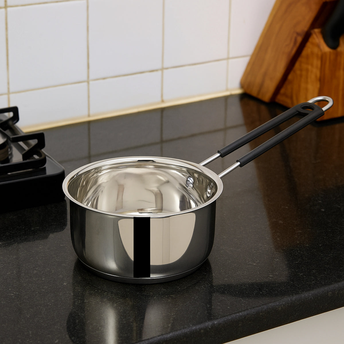 MAHAA Utena Stainless Steel Sauce Pan – Tea, Milk, Soup, Maggie Pan | Tri Ply Base | Non-stick | Gas & Induction Compatible | StayCool+ Handle | 14cm / 16cm / 18cm / 20cm - 14 CM